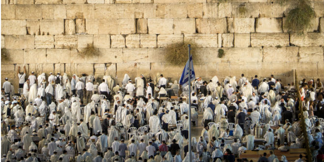 Miles de judíos ortodoxos rezan en el Muro Occidental, en la Ciudad Vieja de Jerusalén, durante la festividad judía de Iom Kipur, el Día de la Expiación. (Crédito: Ben Toren / Flash90)