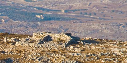 El altar de Yoshua(Josué) en el Monte Eval - la primera estructura construida por los israelitas en su entrada a la Tierra de Egipto. Más detalles en este informe. El área de color más claro en la parte superior de esta foto es el valle de Tirtzah, unos 1000 pies por debajo, que domina el Altar. Ver...