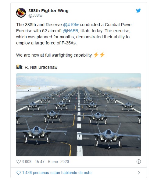 En otra aparición del número mágico de Magog, la Fuerza Aérea de los EE. UU. Lanzó la asombrosa cifra de 52 aviones de combate avanzados en rápida sucesión a la Base de la Fuerza Aérea Hill en Utah. Las aeronaves hiper-avanzadas F-35A, cada una con un valor aproximado de $ 89.2 millones, fueron pilotadas por las 388th y Reserve 419th Fighter Wings en servicio activo. El ejercicio mostró la enorme fuerza de la Fuerza Aérea y envió una advertencia inequívoca a Irán.
